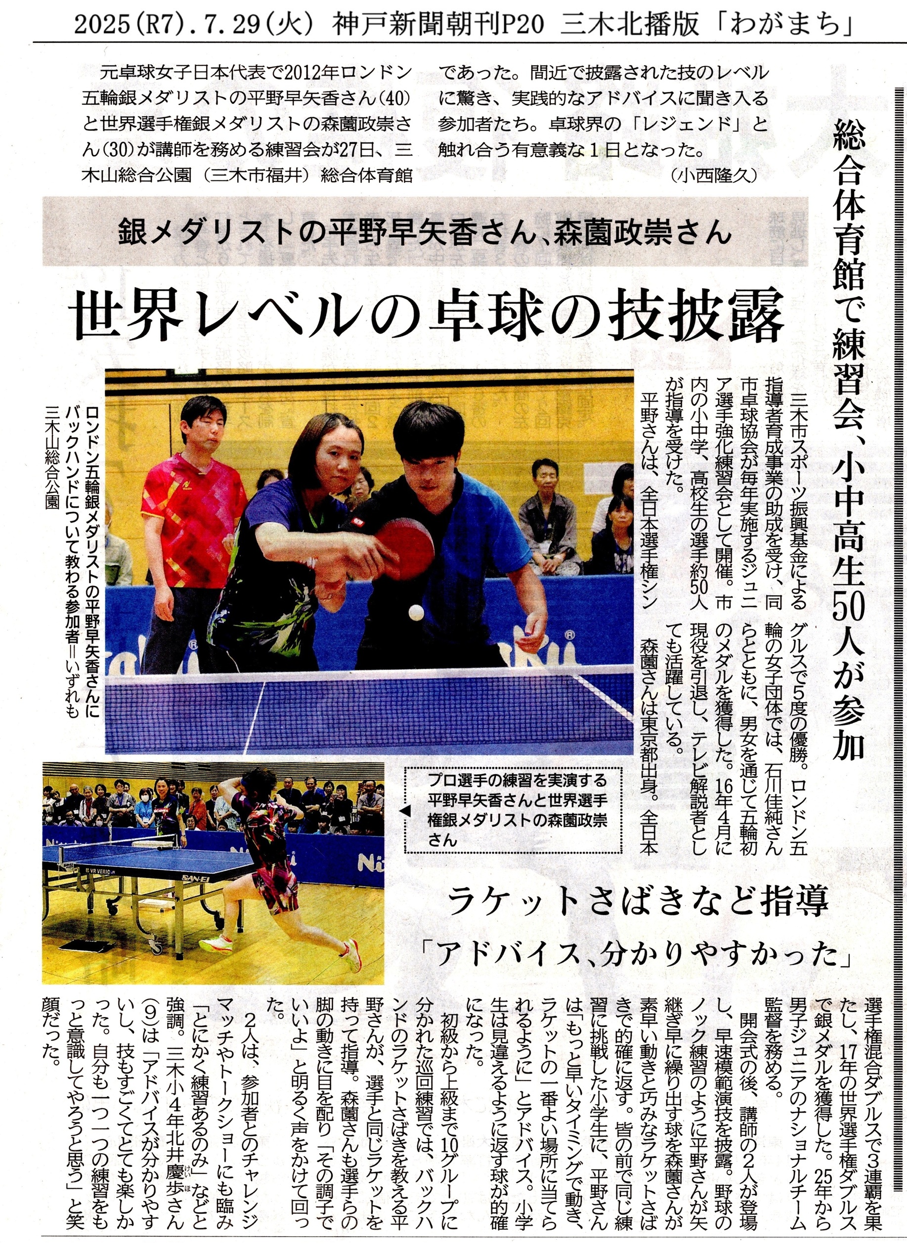 平野早矢香・森薗政崇 卓球指導者講習会 公益財団法人 三木市スポーツ振興基金 2025(令和7)年度指導者育成事業 2025(R7)年度 三木市卓球ジュニア選手強化練習会 (三木市スポーツ協会 委託事業) |